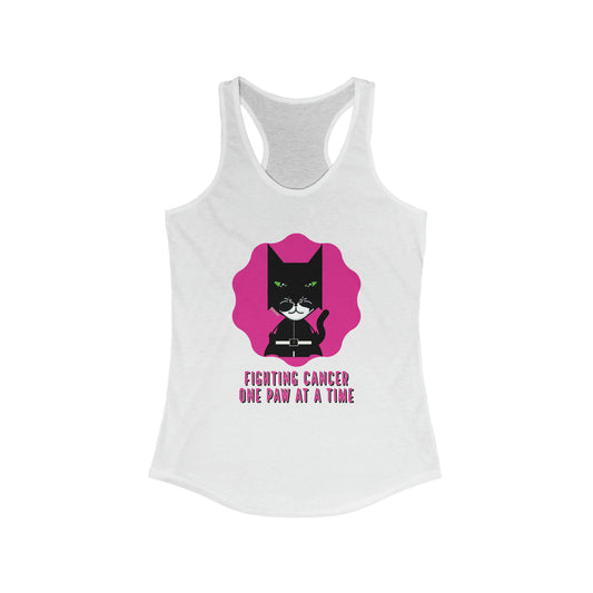 Chemo Cat Racer Tank: Fighting Cancer One Paw at a Time - Stylish Slim Fit for Empowered Women