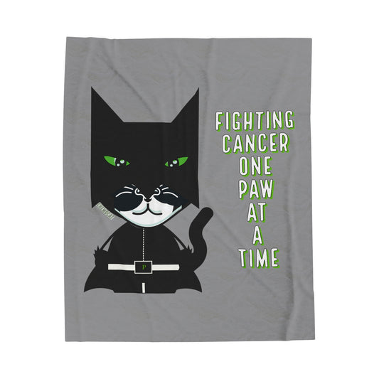 Chemo Cat Plush Velveteen Blanket Grey: Fighting Cancer One Paw at a Time - Cozy Home Décor